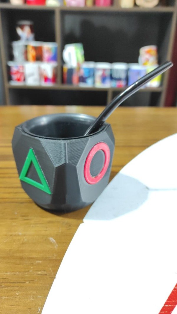 Mate entero, por fuera impresion3D Material: PLA (Ecoamigable), por dentro mate plastico inyectado Material PP (Polipropileno) , removible para su mejor limpieza